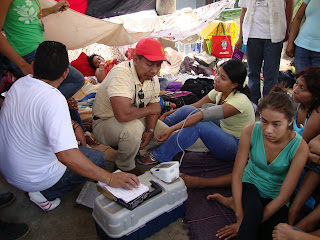 Personal de la Dirección de Salud municipal da atención médica a 33 jóvenes que mantienen una huelga de hambre en el zócalo de Acapulco y se dará seguimiento en ese servicio a fin de que su estado de salud no sea puesto en riesgo.